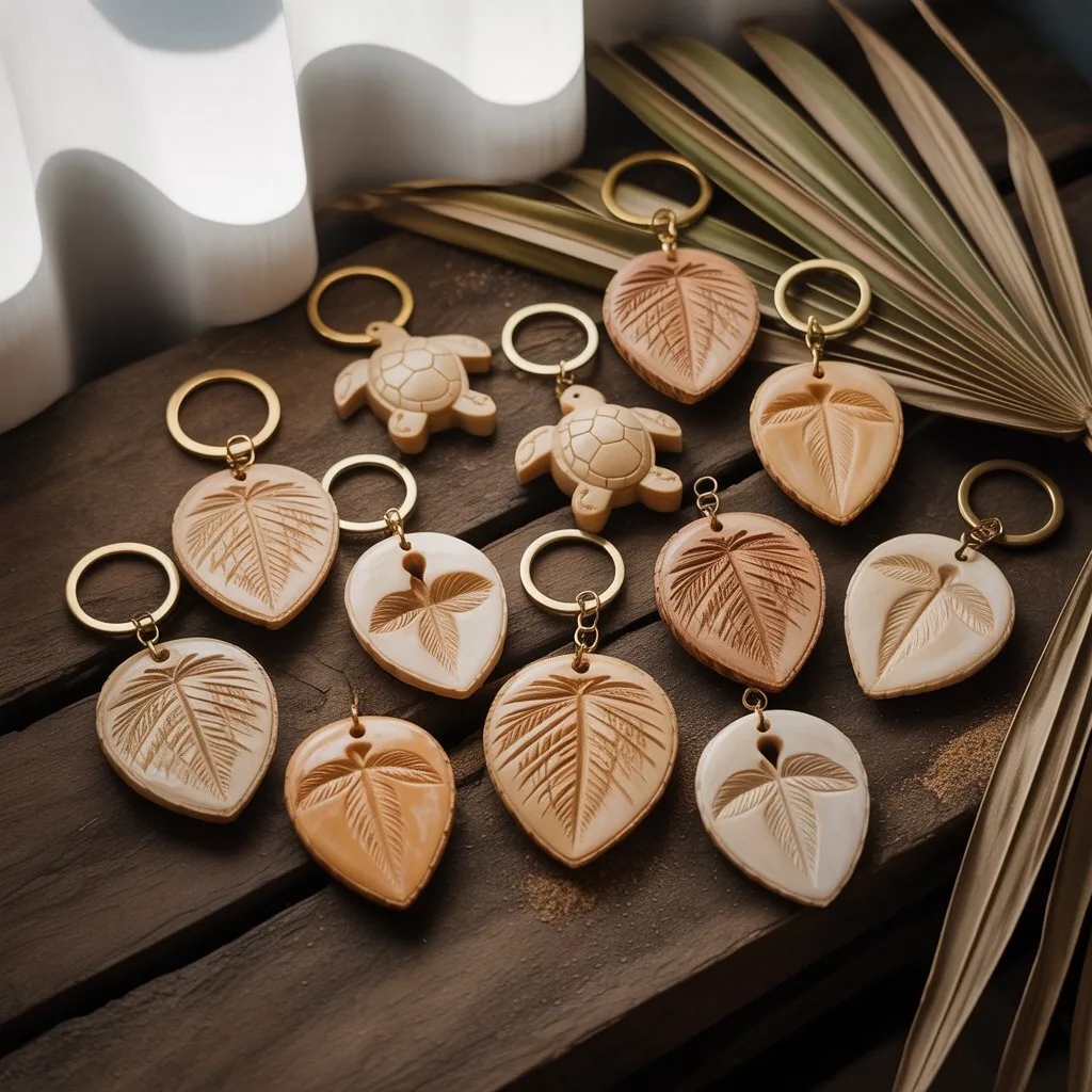 Creating eco-friendly keychains from coconut shells allows for endless artistic freedom. You can design: