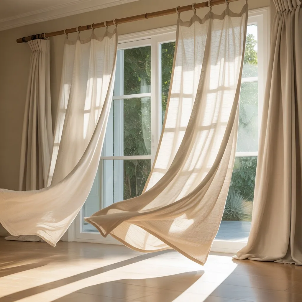 • Linen: Made from flax plants, linen offers a rustic charm with natural wrinkles and excellent breathability. It filters sunlight gently, giving rooms a relaxed, airy feel.